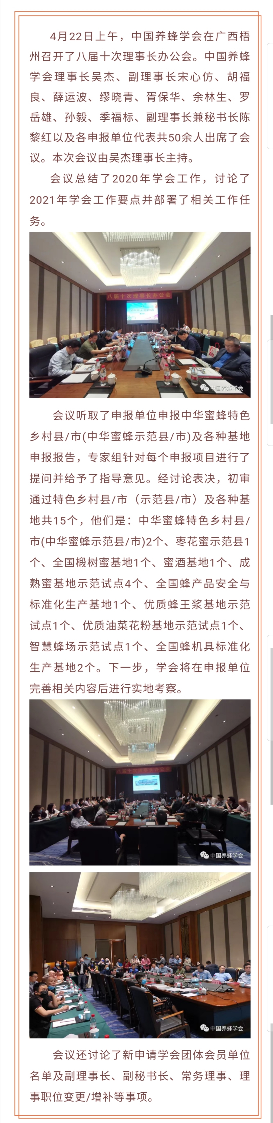 会议资讯|中国养蜂学会八届十次理事长办公会在广西梧州胜利召开