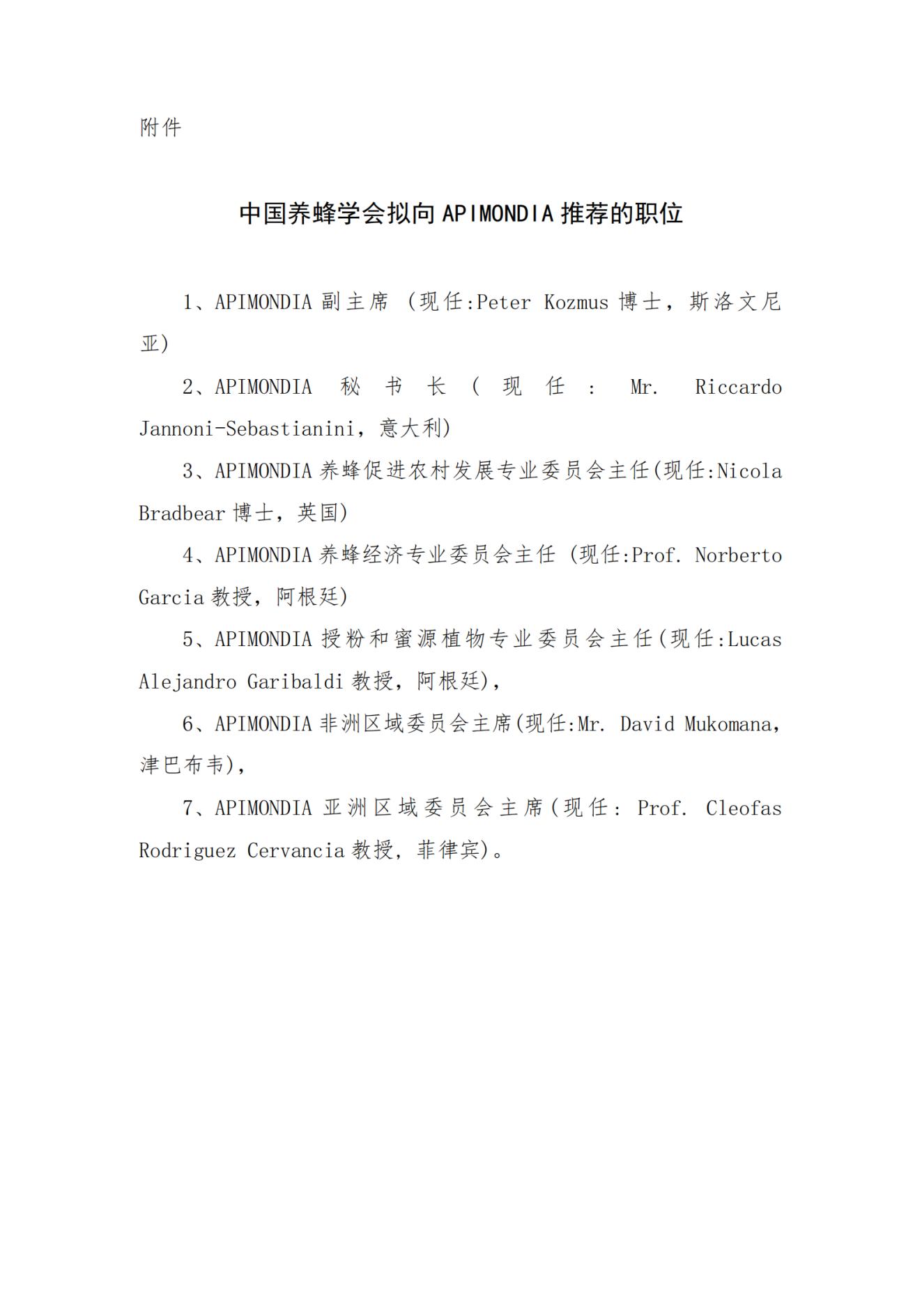 关于推荐国际蜂联(APIMONDIA)职位候选人的通知