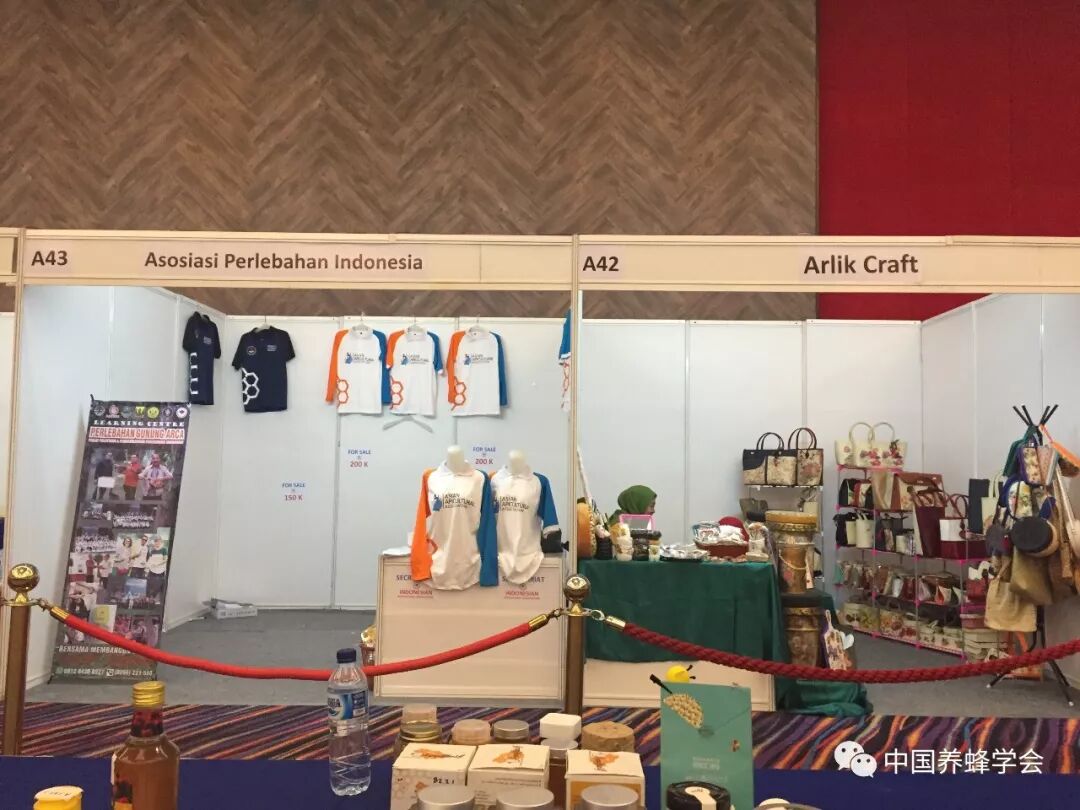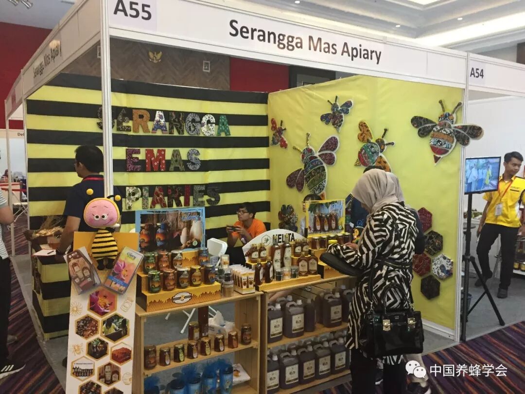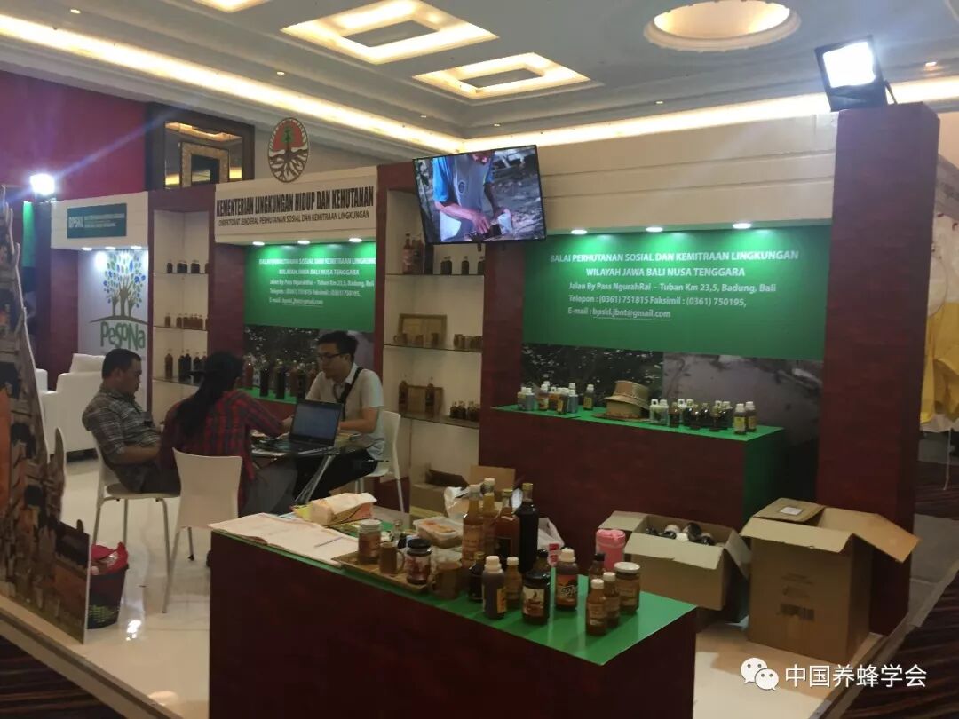 此次会议总体规模小,共设66个展位,中国展商15个展位,国际展商51家。展商多数以印尼当地蜂产品企业为主,印尼本地展台搭建相对漂亮,各类展品均有,无刺蜂展品可算是此次展览的特色,无刺蜂创新蜂箱、蜂蜜、蜂胶成为展览的焦点。中国展位以蜂产品、小机具、蜂衣、蜂帽、蜂粮、蜂药为主,蜂王浆、小机具、蜂衣、蜂帽、蜜蜂饲料备受欢迎和签约。