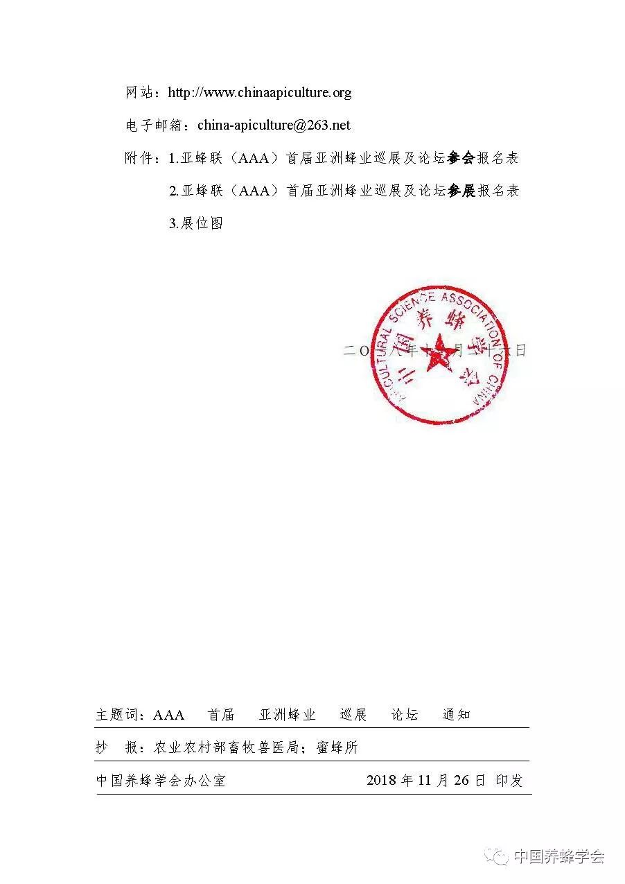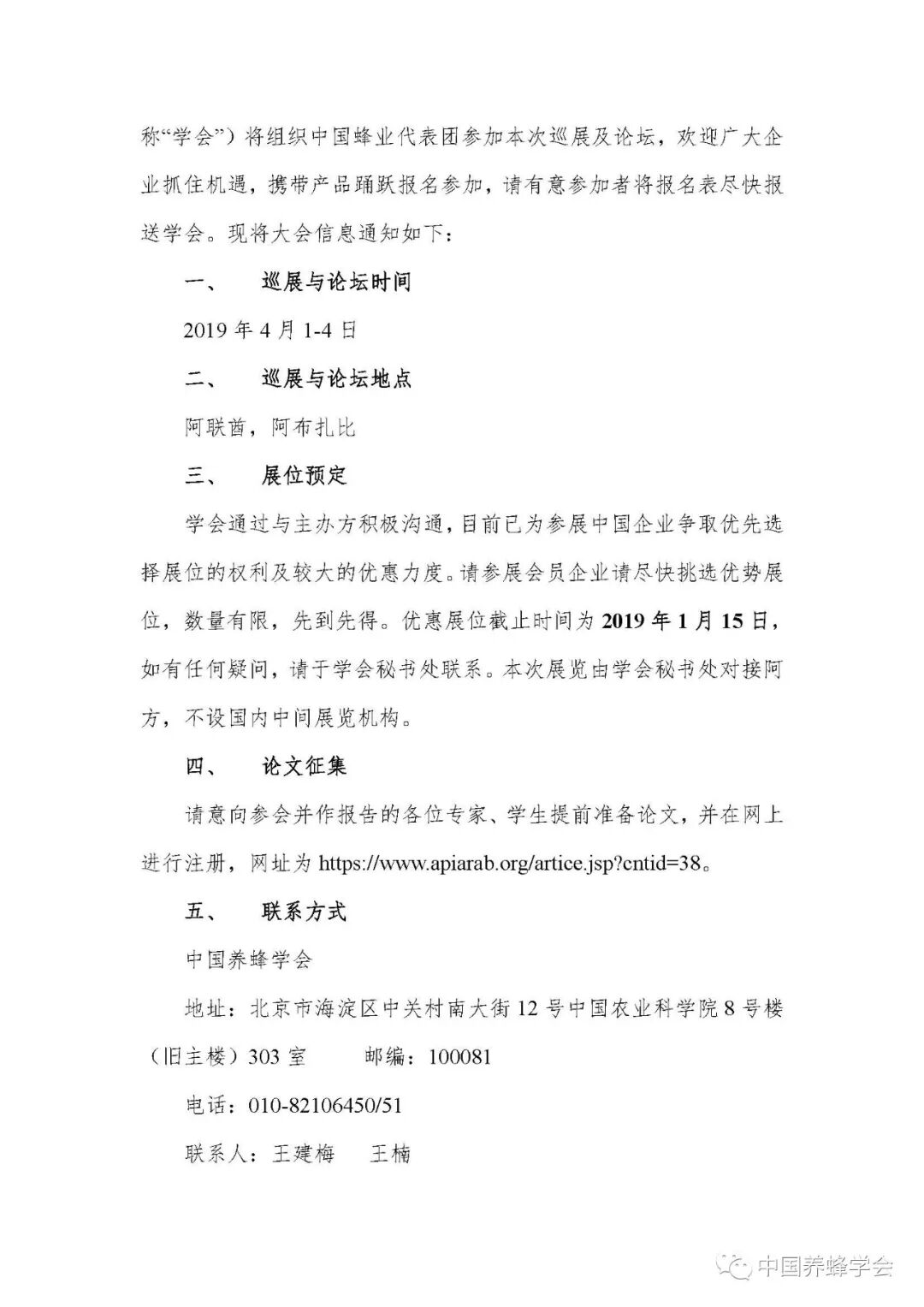 关于组织中国蜂业代表团出席 第49届国际养蜂大会暨博览会的通知