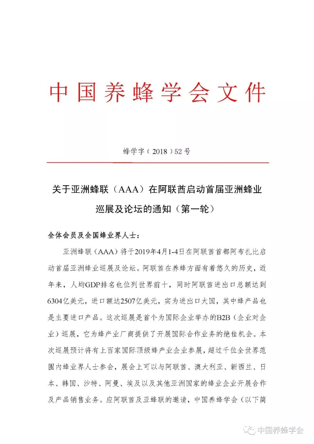 亚洲蜂联(AAA)在阿联酋启动首届亚洲蜂业巡展