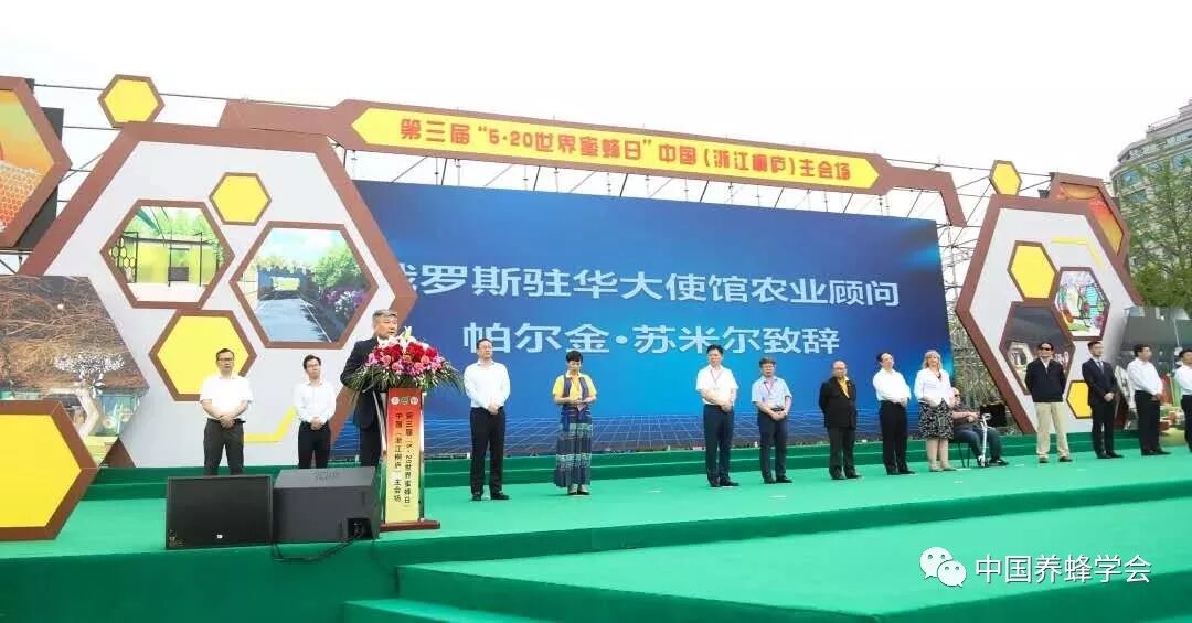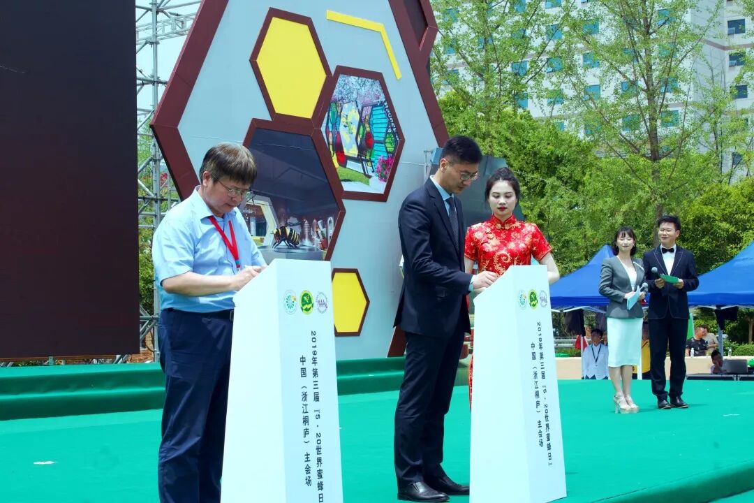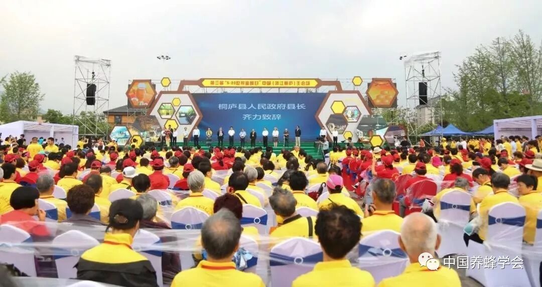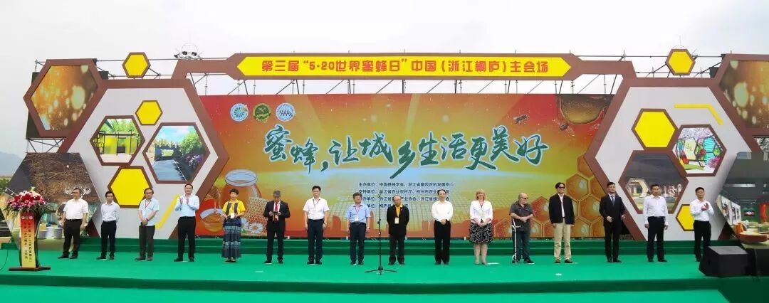 5月20日,第三届“5·20世界蜜蜂日”在中国中心主会场——杭州桐庐胜利开幕。亚洲蜂联(AAA)主席王希利、斯洛文尼亚驻华大使馆参赞潘缇雅、俄罗斯驻华大使馆农业顾问帕尔金·苏米尔先生、西澳大利亚专业养蜂协会会长彼得·德金等外宾,中国养蜂学会理事长吴杰、副理事长兼秘书长陈黎红、副理事长宋心仿、胡福良、陈国宏、缪晓青等学会领导,中国环境科学学会副理事长任官平等生态环境部领导,浙江省农业农村厅副厅长唐冬寿、杭州市副市长王宏等省、市领导,桐庐县委书记方毅、县长齐力等县领导莅临“5·20世界蜜蜂日”活动现场。来自国际友人,全国蜂业专家、学者,百姓等各行代表近千人参与了此次活动。