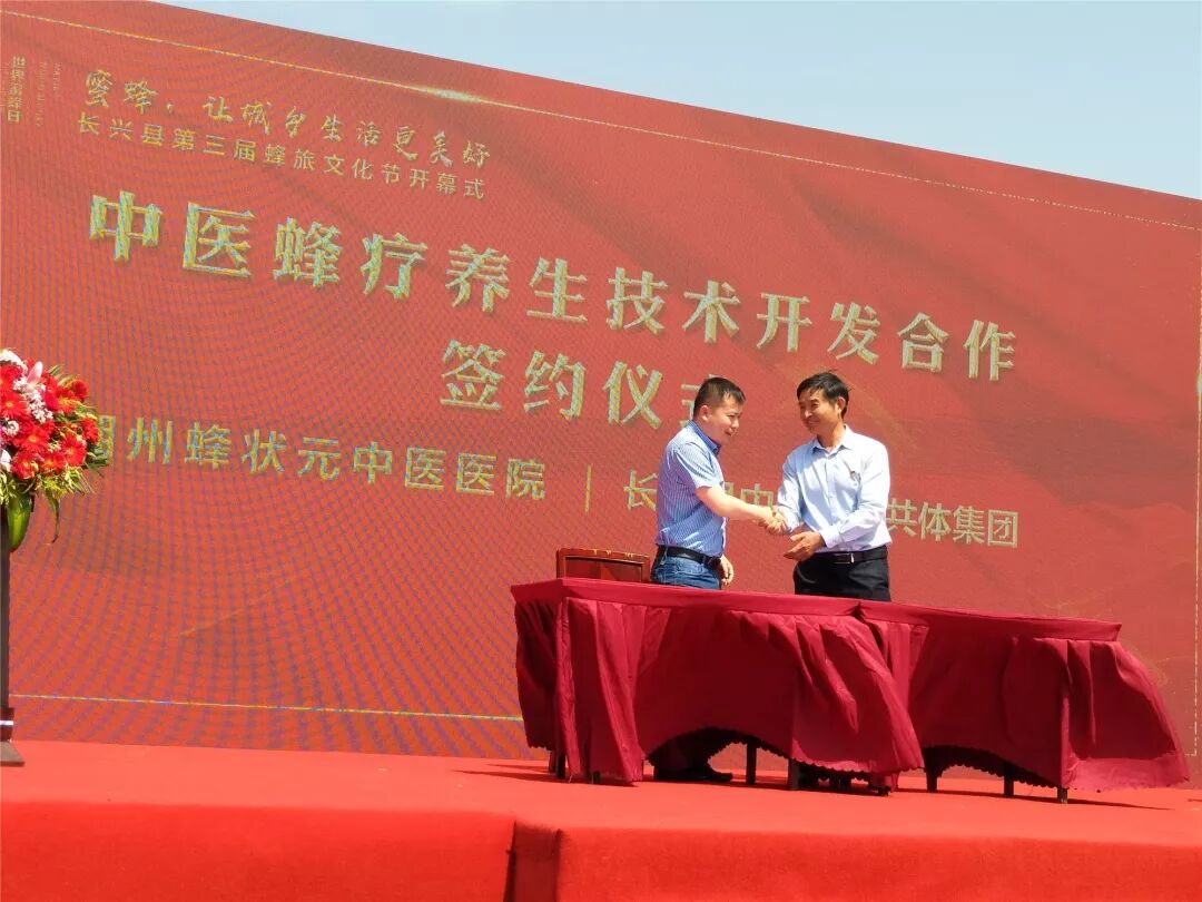 湖州蜂状元中医医院、长兴县中医院进行蜂疗合作签约仪式。