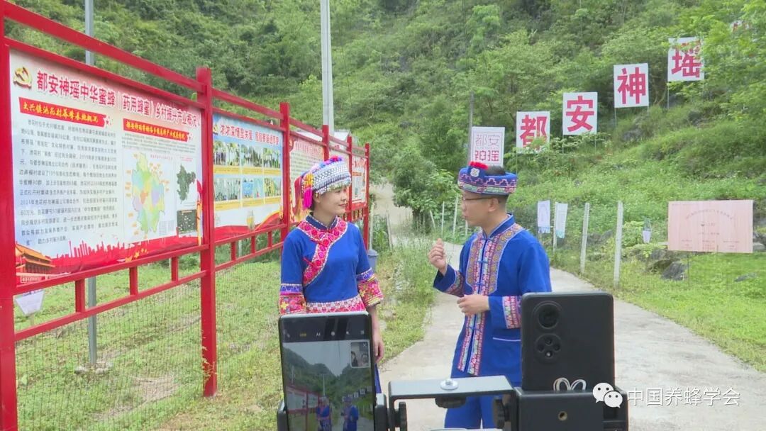 6月3日,中国养蜂学会会员单位——都安神瑶蜂业科技发展有限公司在都安瑶族自治县大兴镇池花村天然生态放蜂基地开展电商直播活动。