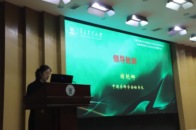 刘春霞在开幕式致欢迎辞,对本次会议的召开表示热烈祝贺,并向与会专家学者简要介绍了学校学科建设、人才培养、农业科技创新与社会服务等情况。她表示,本次会议为蜂产业相关领域的“政产学研”人才提供了交流平台。期待通过此次会议,共同探讨、多方协作,为推动蜂产业与生态农业深度融合贡献更多智慧力量。