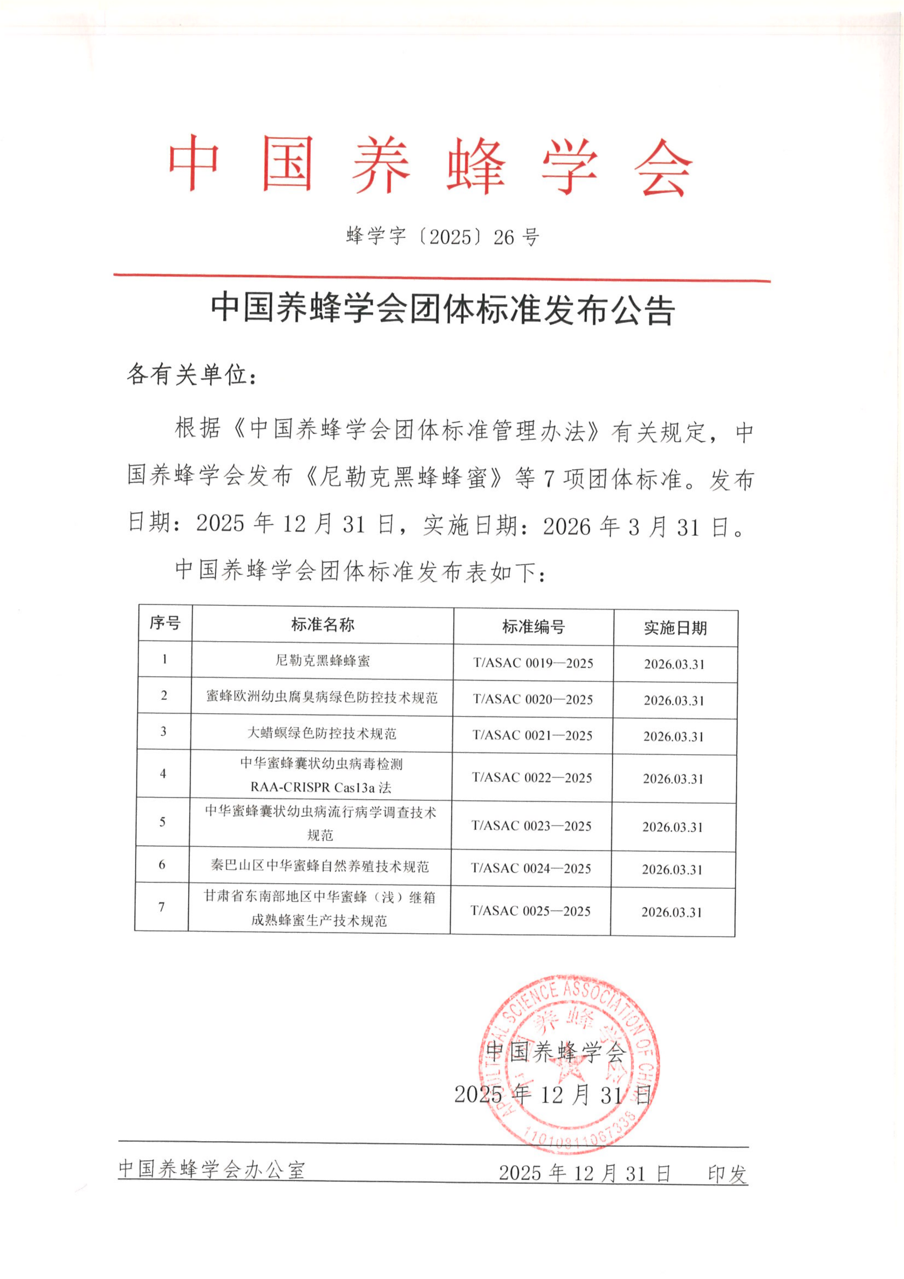 中国养蜂学会关于征求《秦岭中蜂蜂蜜》(征求意见稿)等3项团体标准意见的通知