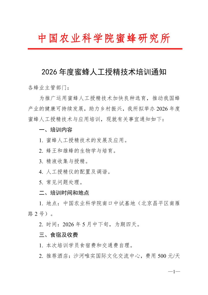 转发通知丨2026 年度蜜蜂人工授精技术培训通知
