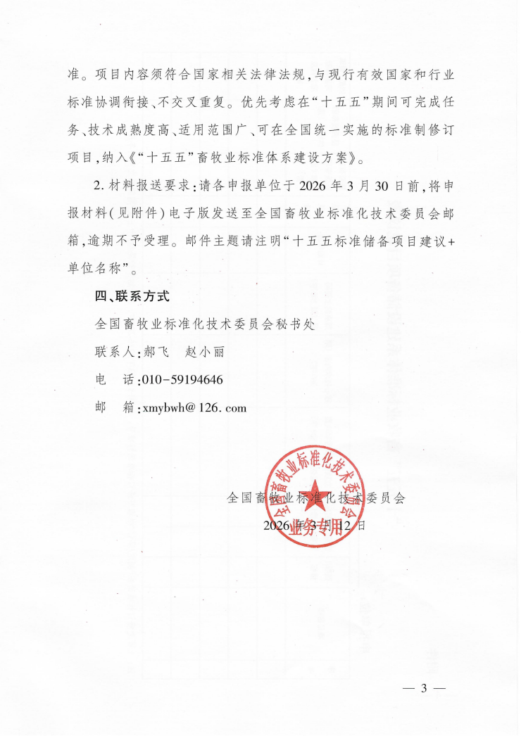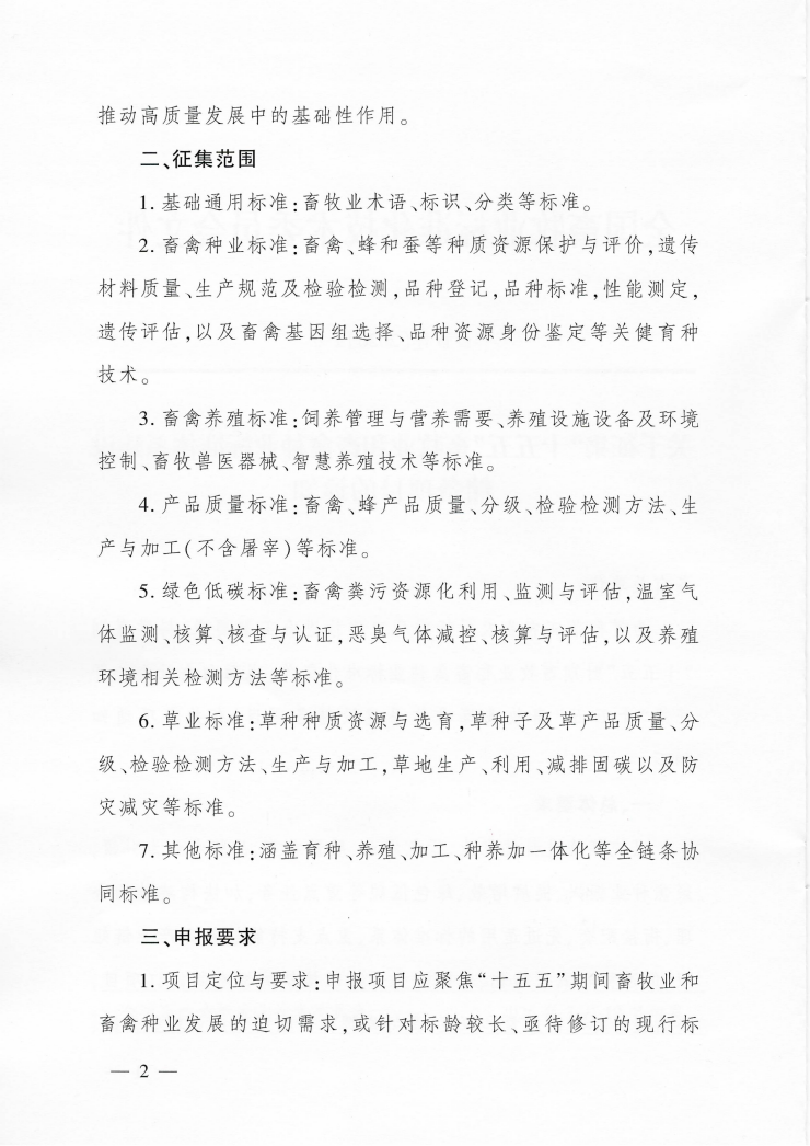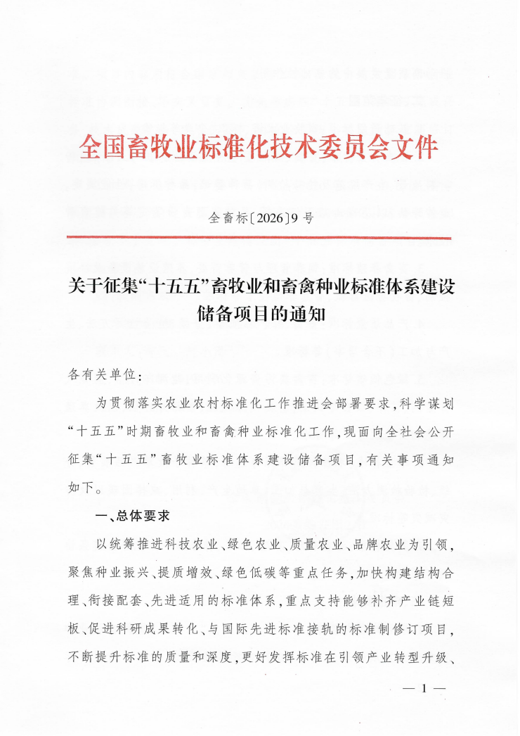 关于征集“十五五”畜牧业和畜禽种业标准体系建设储备项目的通知
