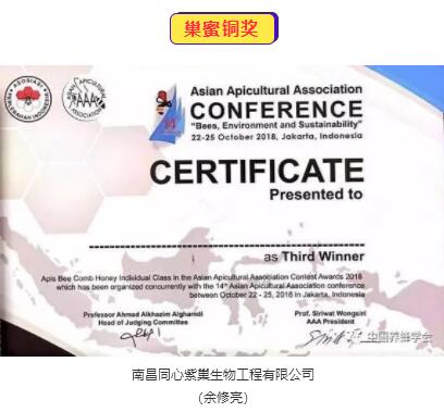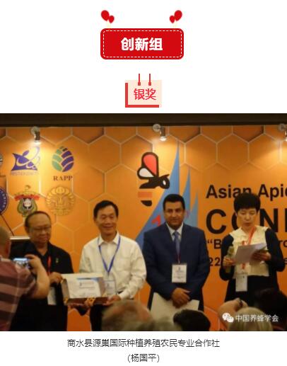 中国养蜂学会率中国蜂业代表团80余人出席了大会暨博览,代表团共获得奖牌23枚,其中:金奖8枚,银奖5枚,铜奖3枚,四等奖和五等奖各1枚,最佳组织奖2枚、特邀报告奖1枚、裁判奖2枚。亚洲蜂联主席Siriwat为全体获奖者颁奖。