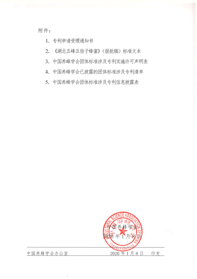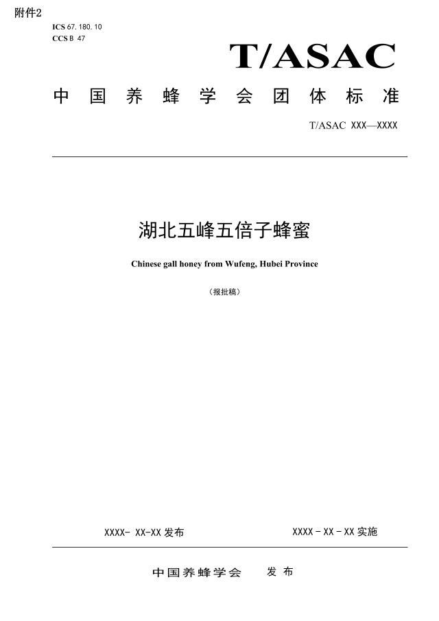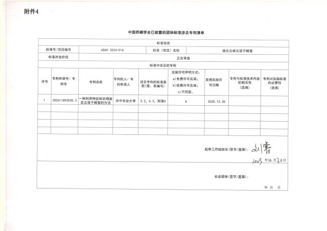 中国养蜂学会关于团体标准<<湖北五峰五倍子蜂蜜>>涉及专利相关信息公示