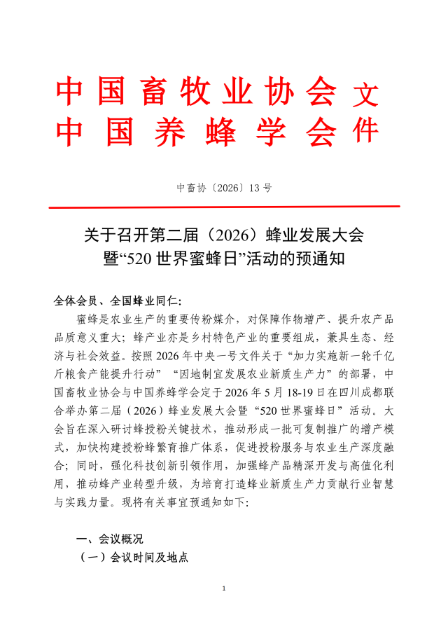 关于召开第二届(2026)蜂业发展大会暨“520世界蜜蜂日”活动的预通知