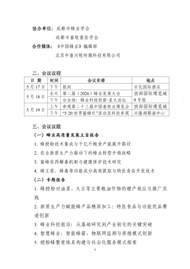 关于召开第二届(2026)蜂业发展大会 暨“5·20世界蜜蜂日”活动的通知